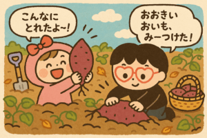 持ち帰ったお芋を嬉しそうに眺める子どもたちの笑顔が、今日の曇り空を吹き飛ばしてくれた一日でした。