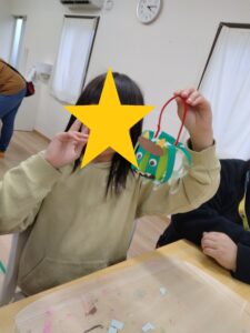 手先のトレーニングを兼ねた工作でしたが、みんな集中して取り組み、自分だけの鬼が完成すると嬉しそうに見せ合っていました。