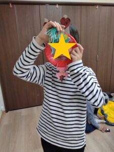 手先のトレーニングを兼ねた工作でしたが、みんな集中して取り組み、自分だけの鬼が完成すると嬉しそうに見せ合っていました。
